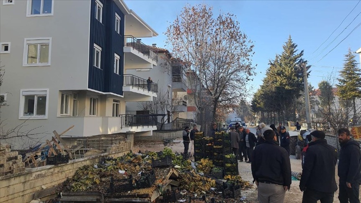 Korkuteli ilçesinde dün meyve yüklü kamyonette meydana gelen patlama sonucu yazlık olarak kullanılan çevredeki bazı dairelerin kapı ve pencereleri kırılmış, duvarlarında hasar oluşmuştu. Meyvelerin bulunduğu konteyner ile muz yüklü kamyonet kullanılamaz hale gelmişti.