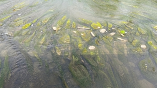 Ardahan'daki Kura Nehri'nin debinin azalmasıyla adacık ve yosunlar oluştu