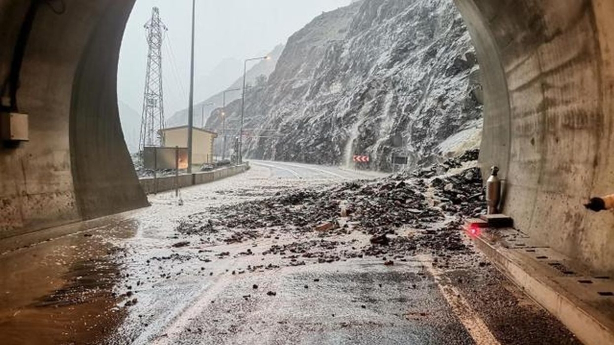 Heyelan tünel girişinde meydana gelmesi nedeniyle bazı sürücüler kısa süreliğine tünelde mahsur kaldı.