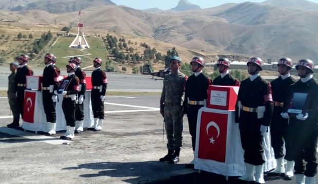 Hakkari' de Astsubay eşini ziyaretten dönerken yola tuzatlanan bombanın patlaması sonucu şehit olan Nurcan Karakaya ile 11 aylık bebeği Mustafa Bedirhan Karakaya için Hakkari Dağ Komando Tugay Komutanlığı'nda tören düzenlendi.