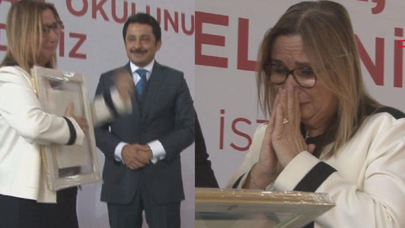 Okuduğu okulu ziyaret eden Bakan Pekcan, babasının mektubu okunmasıyla gözyaşlarına hakim olamadı