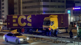 Basın Ekspres Yolu, bariyerlere çarparak makaslayan tır dolayısıyla trafiğe kapandı.