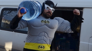 AKSARAY'da su satıcısı Adem Yılmaz, satışlarını artırmak için 'Batman, Süpermen, Örümcek Adam' kostümleri giyerek ev ve iş yerlerine damacana su satıyor.