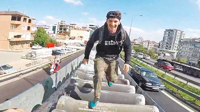 Daha önce yakalanıp serbest bırakılan sporcu bu sefer de E-5 karayolu Pendik mevkiinde Ukrayna uyruklu bir arkadaşıyla tehlikeye davetiye çıkardı. Gençler, trafikte bir süre takip ettikleri TIR'ın yavaşlamasını fırsat bilerek dorsesine tırmandı. Beton boru yüklü TIR'ın üstünde zıplayarak ön tarafa doğru ilerleyen ve akrobatik hareketler yapan gençler, dakikalarca bu şekilde yolculuk etti.