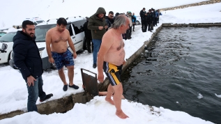 Hava sıcaklığının sıfırın altında 10 dereceye kadar düştüğü Bitlis'te Beşminare Akademisi Derneği üyeleri, doğal kaynak suyuyla beslenen havuzda yüzdü.