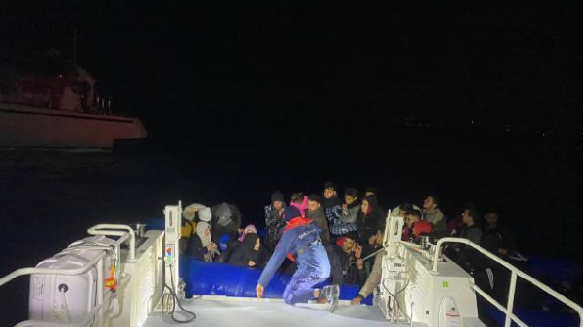 Ekiplerce durdurulan lastik bottaki 37 düzensiz göçmen bota alınarak karaya çıkarıldı.