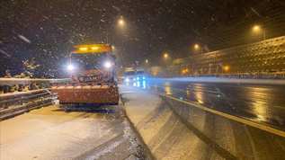 Karayolları ekipleri, güzergahta kar küreme ve tuzlama çalışmaları yapıyor.