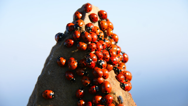 Kent merkezine 90 kilometre uzaklıkta bulunan ve bulutların arasında yer alan tepede, neredeyse her taşın altında binlerce uğur böceği bulunuyor.