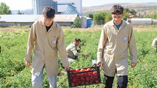 Çankırı'da lise öğrencileri tarafından okullarının uygulama alanlarında yetiştirilen domates satılarak gelir elde ediliyor.