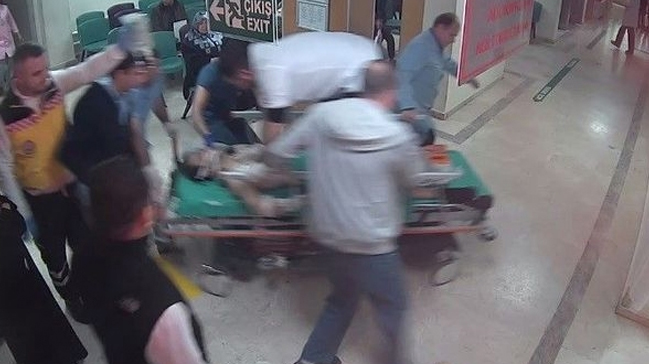 Bursa'da kalbinin altından bıçak yarasıyla hastaneye gelen kişiyi, Acil Tıp Uzmanı Dr. Hüseyin Yenice ameliyathaneye gidene kadar sedyenin üzerinde kalp masajı yaparak hayatta tuttu. Kahraman doktorun insan hayatı için gösterdiği bu çaba ise saniye saniye kameralara yansıdı. İHA'nın haberine göre, Bursa'da salı günü kalbinin altından aldığı bıçak darbeleri ile yaralanan 32 yaşındaki kişi, 112 Acil Servis ekipleri tarafından Bursa Devlet Hastanesi'ne kaldırıldı. Acil serviste ilk müdahalesi yapılan kişinin, ameliyathaneye alınması için harekete geçildiğinde kalbi durma noktasına geldi. Ameliyathaneye götürülen kişinin bulunduğu sedyenin üzerine çıkan Acil Tıp Uzmanı Dr. Hüseyin Yenice, yolculuk esnasında kalp masajı yaparak kişiyi hayatta tutmaya çalıştı. Bu anlar ise güvenlik kameralarına saniye saniye yansıdı.