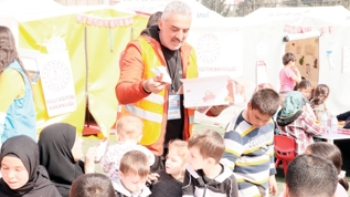Beş büyük deprem atlatan okul müdürü çadır kentte vatandaşlara destek oluyor.