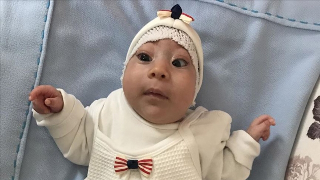 Kocaeli'nin Derince ilçesinde başında 1 kilo 250 gramlık kitleyle doğan ve 'cranium bifidum' teşhisi konulan 2,5 aylık Elif bebek, yapılan ameliyatla adeta yeniden doğdu.