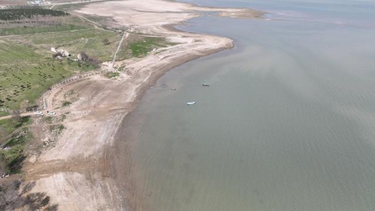 GÖLDE AZALAN SU SEVİYESİ HAVADAN GÖRÜNTÜLENDİ