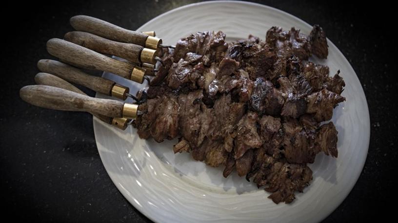 Pişirilmeden önce soğan, karabiber ve tuzla terbiye edilen et, dinlendirme aşamasının ardından parçalar halinde "cağ" adı verilen şişlere takılıyor.