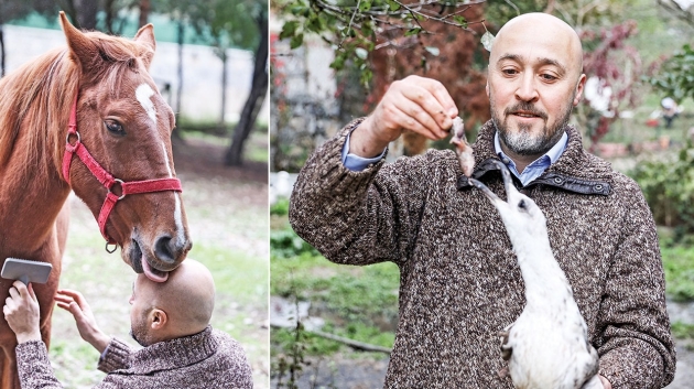 Köpekler, kediler, martılar, kazlar ve atlıyla 2 dönüm arazide masal gibi bir hayat yaşayan Mert Akkök, evinin odalarını da can dostlara açtı.
