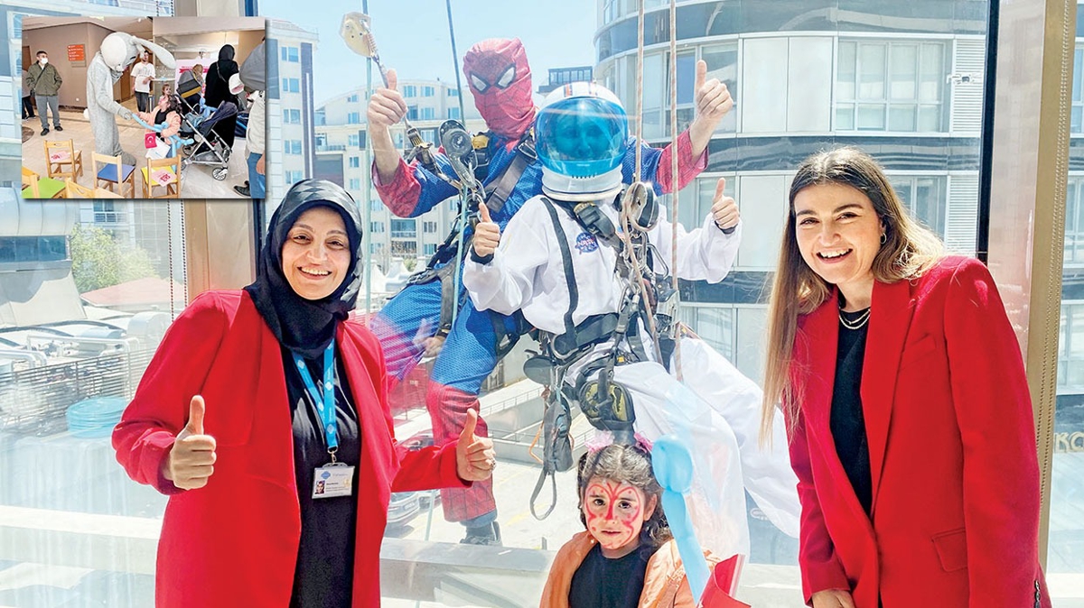 İstanbul Esenyurt'ta 23 Nisan Ulusal Egemenlik ve Çocuk Bayramı'nı hastanede geçiren minikler unutulmadı. Örümcek adam ve astronot kostümü giyen dağcılar, hastane çatısından metrelerce aşağı inerek çocukların bulunduğu odaların camına ulaşarak sürpriz yaparken o anlar havadan görüntülendi.