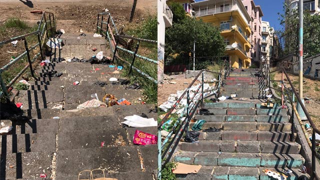 Lümpenlerin semti çöplüğe döndü! Cihangir'in meşhur boğaz manzaralı 'merdivenleri' artık idrar kokuyor