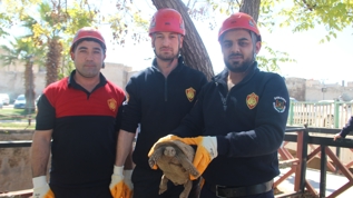 Şanlıurfa'da 15 Mart'ta etkili olan aşırı yağış sonucu meydana gelen sel suları ile Karakoyun Deresi'ne sürüklenerek 37 gündür mahsur kalan dağ kaplumbağası, itfaiye ekipleri tarafından kurtarıldı.