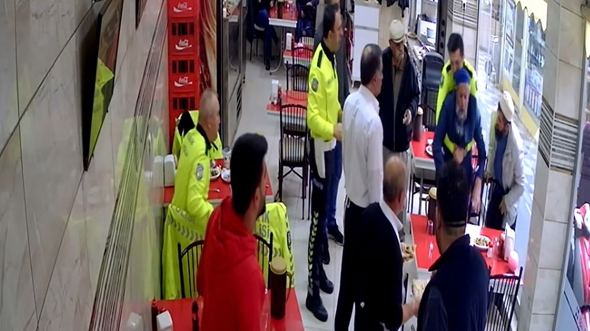 Bu sırada yan masada bulunan Sungurlu İlçe Emniyet Müdürlüğü Trafik Denetleme Şube Müdürlüğünde görevli polis memuru Bünyamin Temiz, yerinden kalkarak yaşlı adamın yanına gitti.