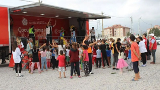 "Bir tır dolusu mutluluk şehrine geliyor" temasıyla düzenlenen etkinliklerde, çocuklar müzik ve palyaçolar eşliğinde oyunlar oynayıp eğlenceli vakit geçirdi.