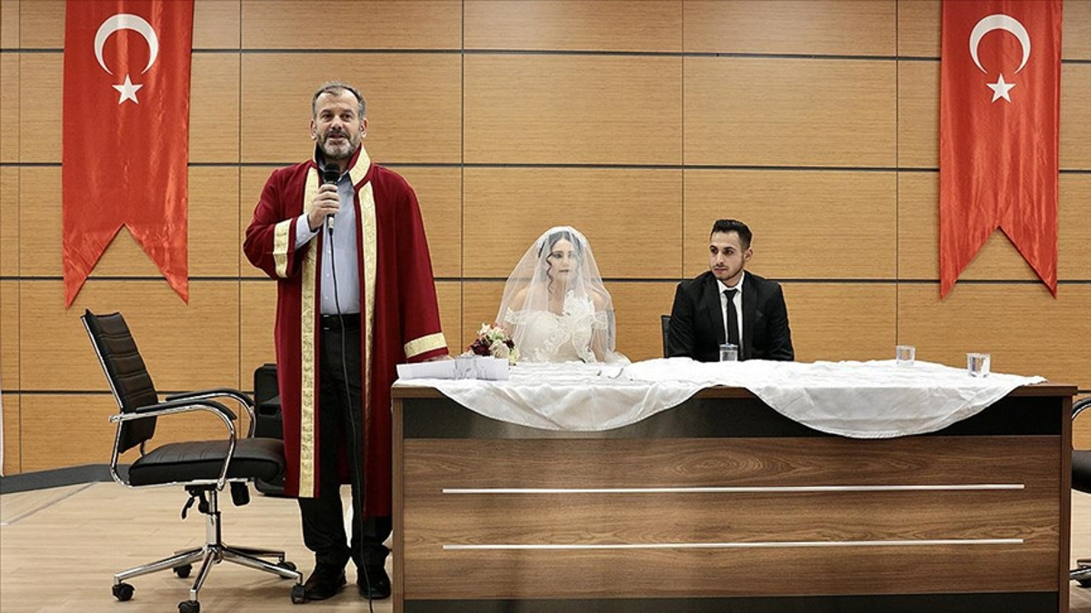 Kahramanmaraş merkezli depremlerin ardından Konya'daki Tahir Büyükkörükçü Köyceğiz KYK Yurdu'nda misafir edilen 20 yaşındaki Şeyma Çam ile 24 yaşındaki Mustafa Ulufer evlendi.
