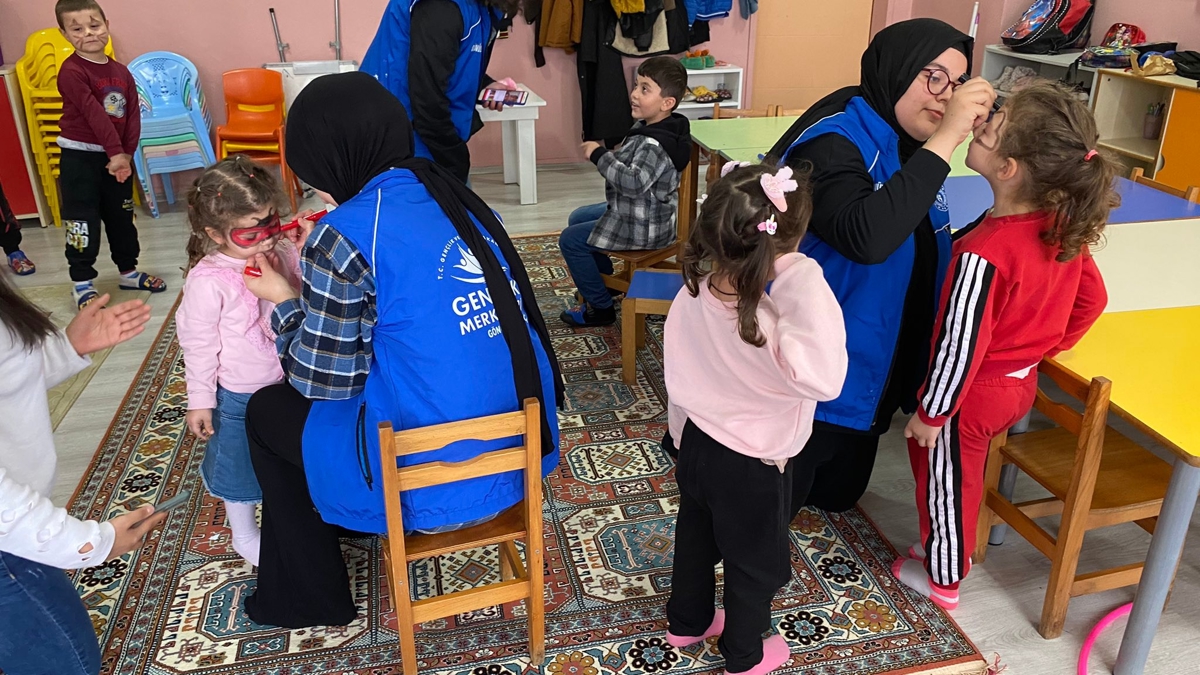 Düzce'de Gençlik Merkezi çalışanları ve gönüllüler, okulları ziyaret ederek öğrencilere depremi unutturmaya çalışıyor.