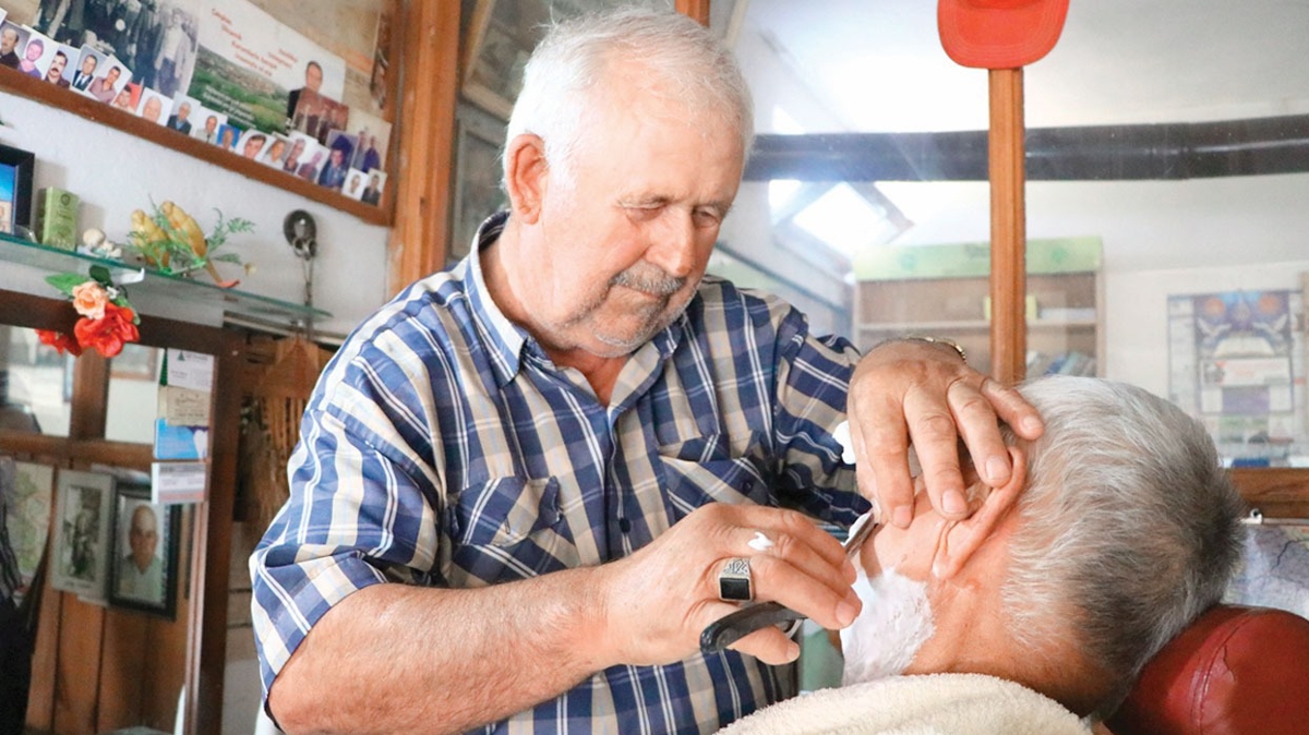 Tekirdağ'da "Dilsiz berber" olarak bilinen 78 yaşındaki işitme engelli Kamil Yıldız, müşterilerinin fotoğraflarını yarım asrı aşkın zamandır sergiliyor.