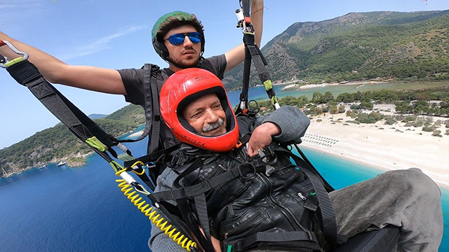 Isparta Senirkent’ten bir reklam filmi projesi için Muğla’nın Fethiye ilçesine giden Çeliköz, Yamaç Paraşütü Pilotu Samed Özata ile birlikte Fethiye semalarında yamaç paraşütü yaptı.