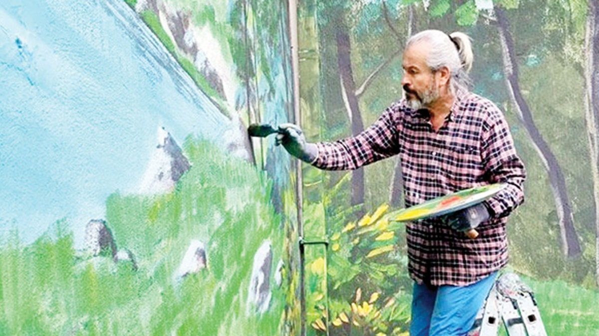 Denizli'de yaşayan ressam Gürcan Ekici, 23 yıldan bu yana yaklaşık 800 duvara resim yaptı.