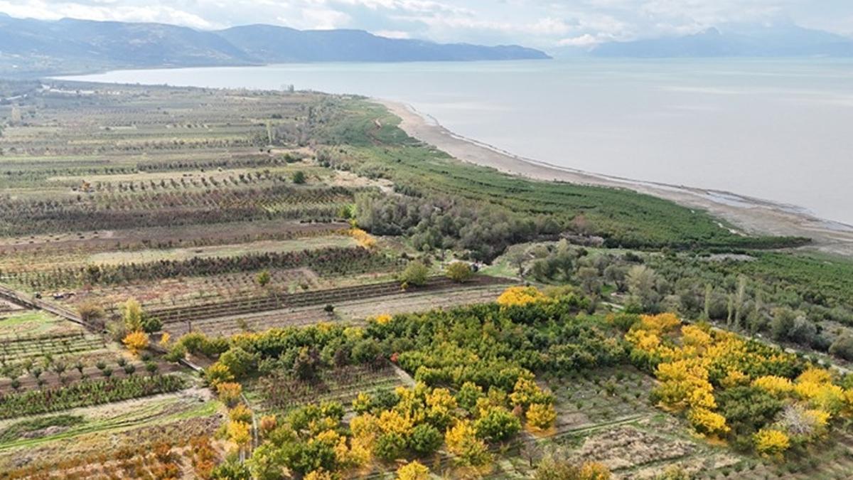 Isparta'da bulunan Eğirdir Gölü, sonbaharın renkleriyle havadan görüntülendi.