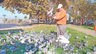 Evli ve iki çocuk babası Turgay Ertürk, "Elimden geldiği kadar güvercinleri ve diğer sokak hayvanlarını aç bırakmamaya çalışıyorum" dedi.