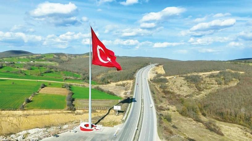 Samsun-Ankara karayolu üzerinde 430 kilogram ağırlığındaki bayrağı görenler gururlanıyor. Yoldan geçen sürücüler bayrağın yanında durarak fotoğraf çektiriyor. Her 3 ayda bir bakımı yapılan bayrak yıprağından terzi tarafından onarılıyor.