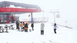 Kayseri'de hava sıcaklıklarının düşmesiyle 3 bin 917 rakımlı Erciyes Dağı'nda başlayan kar yağışı, belirli aralıklarla sürüyor.