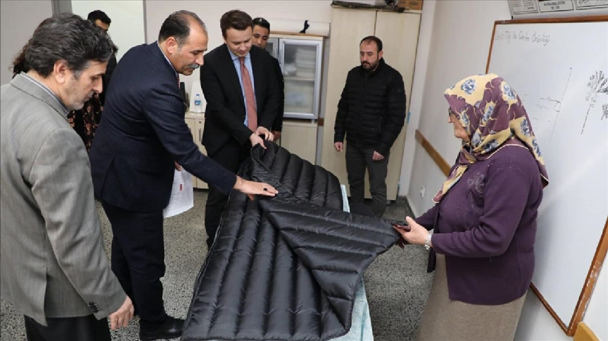 Vali Vekili Mehmet Deniz Arabacı ile İl Milli Eğitim Müdürü Aziz Gün, halk eğitim merkezinde uyku tulumu diken kursiyerleri ziyaret ederek çalışmalar hakkında bilgi aldı.