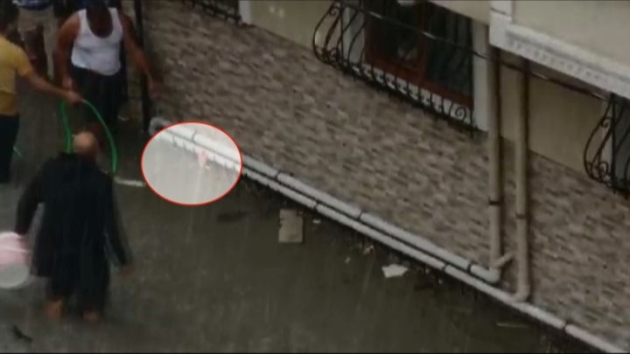 İstanbul Esenyurt'ta etkili olan şiddetli yağmurun ardından dehşete düşüren görüntüler ortaya çıktı. Su basan bodrum katta mahsur kalan bir kişinin ellerini dışarı çıkararak yardım istediği anlar saniye saniye görüntülendi. Vatandaşlar ise mahsur kalan kişinin nefes alabilmesi için önce su hortumu uzattı daha sonra kovalar ile suyu temizlemeye çalıştı.