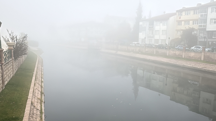 Hava sıcaklığının 7 derece ölçüldüğü kentte özellikle Porsuk Çayı ve çevresi de sisle kaplandı.