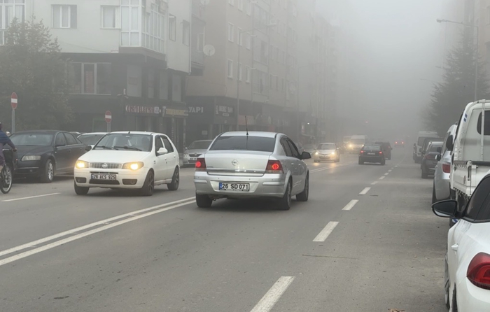 Görüş mesafesinin düşmesine neden olan sis nedeniyle sürücüler şehir merkezindeki yollarda kontrollü ilerledi.