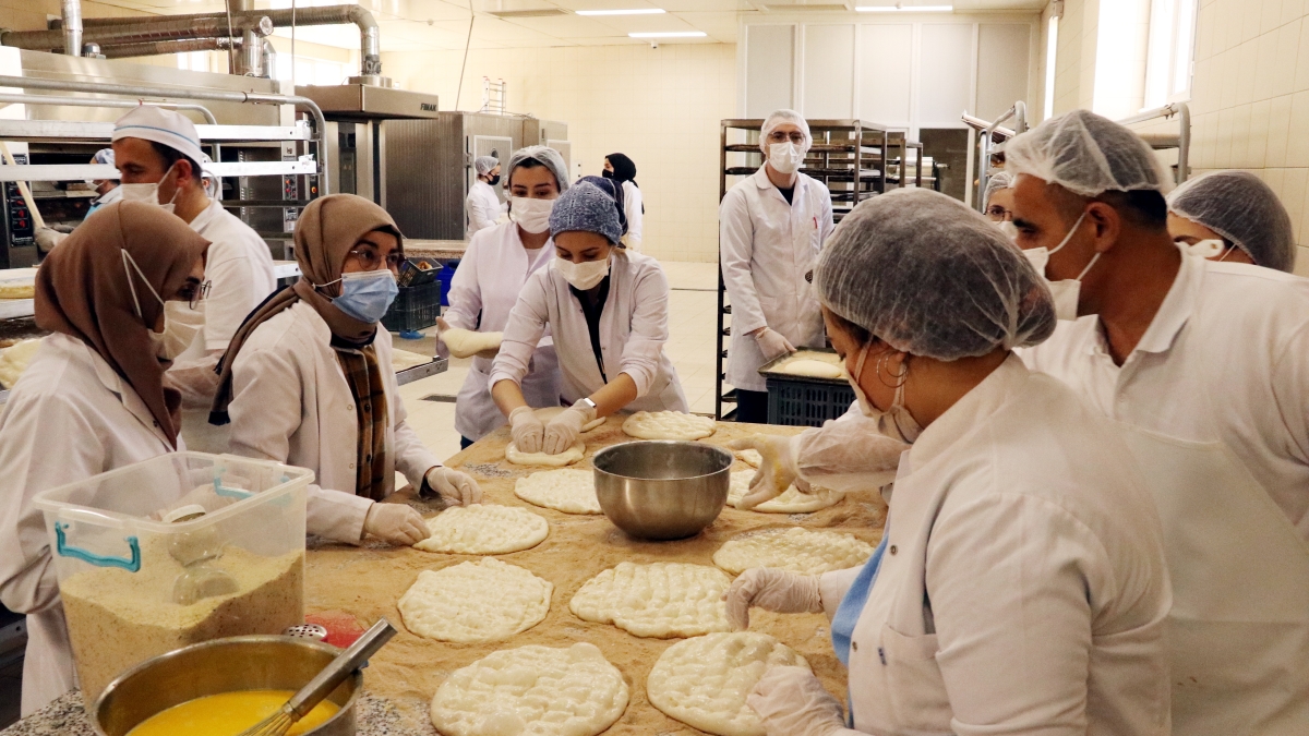 Erzurum'da Atatürk Üniversitesi Ziraat Fakültesi Gıda Mühendisliği Bölümünde eğitim alan öğrenciler, Gıda ve Hayvancılık Uygulama ve Araştırma Merkezi bünyesindeki ekmek fabrikasında ramazan pidesi üretiyor.