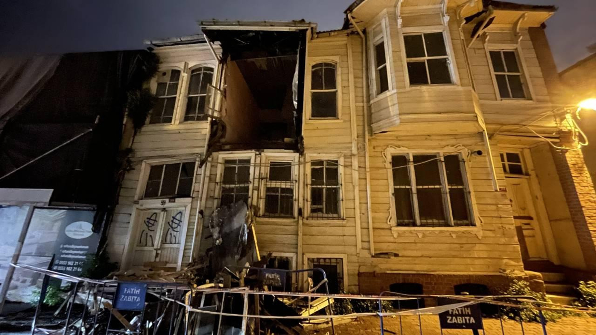 İstanbul Fatih'te iki katlı tarihi ahşap binada kısmi çökme meydana geldi.