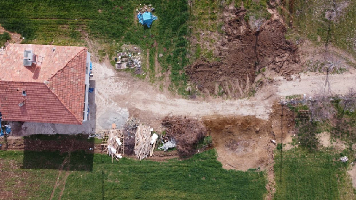 Doğu Anadolu Fay Hattı'nın yüzey kırıkları oluşturduğu beldede bir yol 4 metre sola doğru ötelendi. Hattın 4 metre sola doğru kaydırdığı yol dron ile de görüntülendi.
