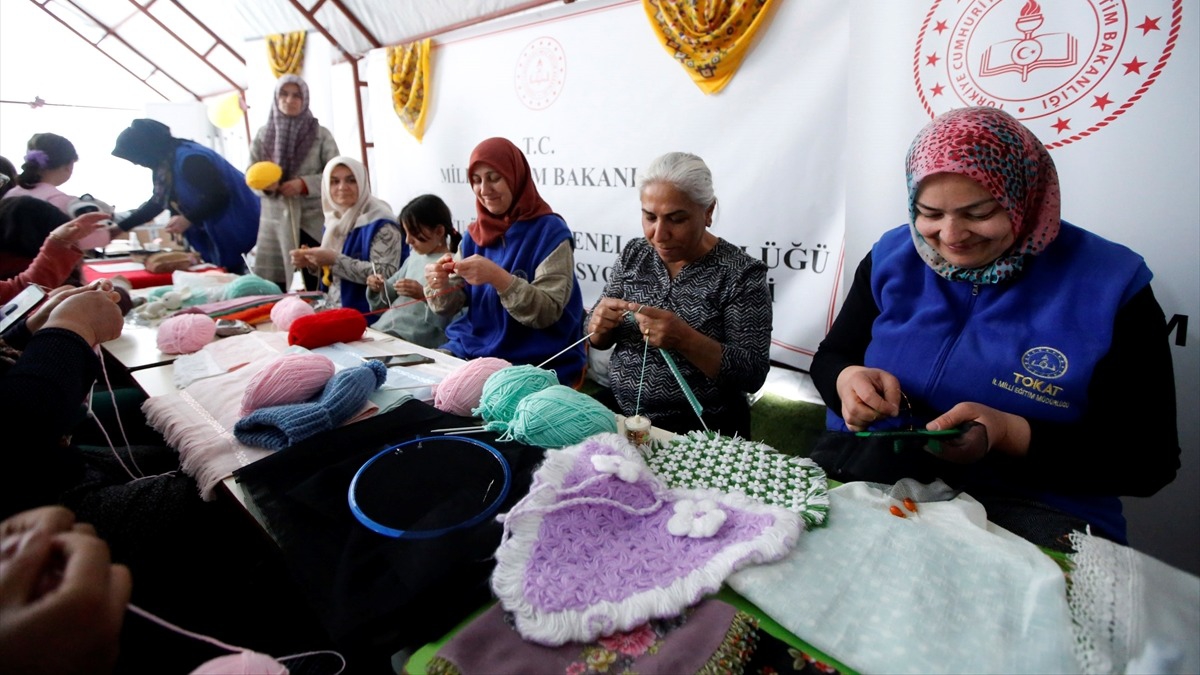 Adıyaman'ın Gölbaşı ilçesinde kurulan Tokat Psikososyal Destek Merkezi'nde, faaliyetlerle depremin izleri unutturulmaya çalışılıyor. Gölbaşı ilçesi Yenikent Mahallesi'nde, çocuklarıyla destek merkezine gelen kadınlar için de "örgü terapisi" uygulanıyor. Çocukları oynarken depremzede kadınlar da örgü ve taş baskı yapıyor.