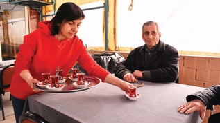 Eskişehir'de kahvehane sahibi eşi felç geçirdiği için çalışamayınca işin başına geçen Hamide Baş, her sabah açtığı iş yerinde müşterilerine çay, kahve ve meşrubat servisi yapıyor. İki çocuk annesi Baş "Ayakta durmak zorunda olduğumuz için işimizin başındayız. Olumlu dönüşler aldım" diyor.
