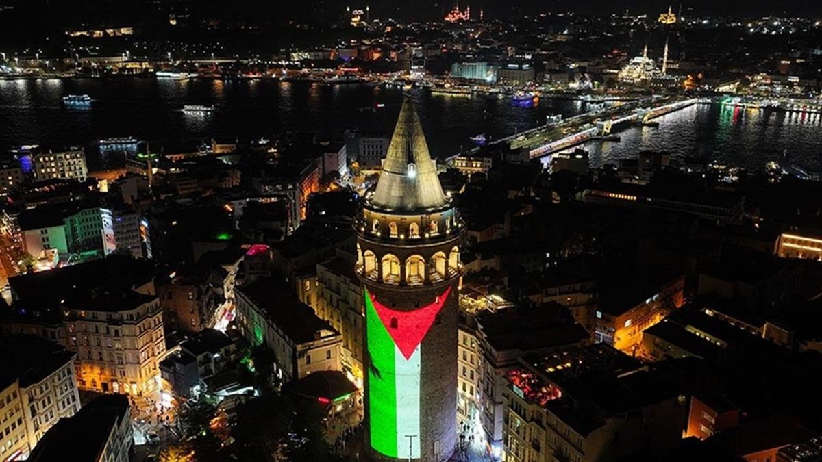 İstanbul'un simge yapılarından Galata Kulesi'nin cephesine mapping tekniğiyle Filistin bayrağı yansıtıldı. Kültür ve Turizm Bakanı Mehmet Nuri Ersoy, "Gazze'de yaşanan insanlık dramına ve süregelen soykırıma dikkat çekmek amacıyla Galata Kulesi'ni Filistin bayrağının renkleriyle aydınlattık. İstanbul'un simge yapısı Galata Kulesi, bu akşam adaletin, vicdanın ve insanlığın sesi oldu." açıklamasını yaptı.