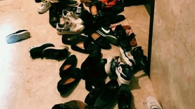 Fotoğraf Sincan ilçesinde denetim yapan ekiplerin cep telefonu kamerasından...Koronavirüse yakalanan bir vatandaşın evde olup olmadığını kontrole giden ekipler kapıda aralarında çocuk ayakkabıların da olduğu 30 çifte yakın yakın ayakkabı ile karşılaştı.