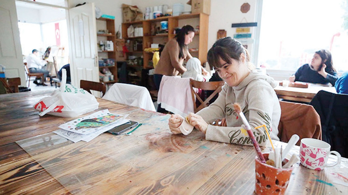 Hatay'da 2018'de açılan Engelsiz Atölye'de, zihinsel, görme ve bedensel engelli 45 öğrenci, kilim dokuyarak ahşap, çini ve seramikten süs eşyaları yapıyor.