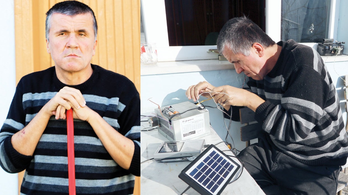 Zonguldak'ın Kozlu ilçesinde, 12 yaşında görme yetisini kaybeden Hüseyin Efe (46), göremese de evi için ekonomik çözümler üretti. Hüseyin Efe, çocukluğundan beri 'en iyi arkadaşım' diye tabir ettiği radyosunun pil masrafını azaltmak için küçük güneş paneliyle çalışan sistem geliştirip radyosuna elektrik verdi. Aynı sistemle pil de şarj eden Efe, pil masrafının ise kalmadığını belirtti.