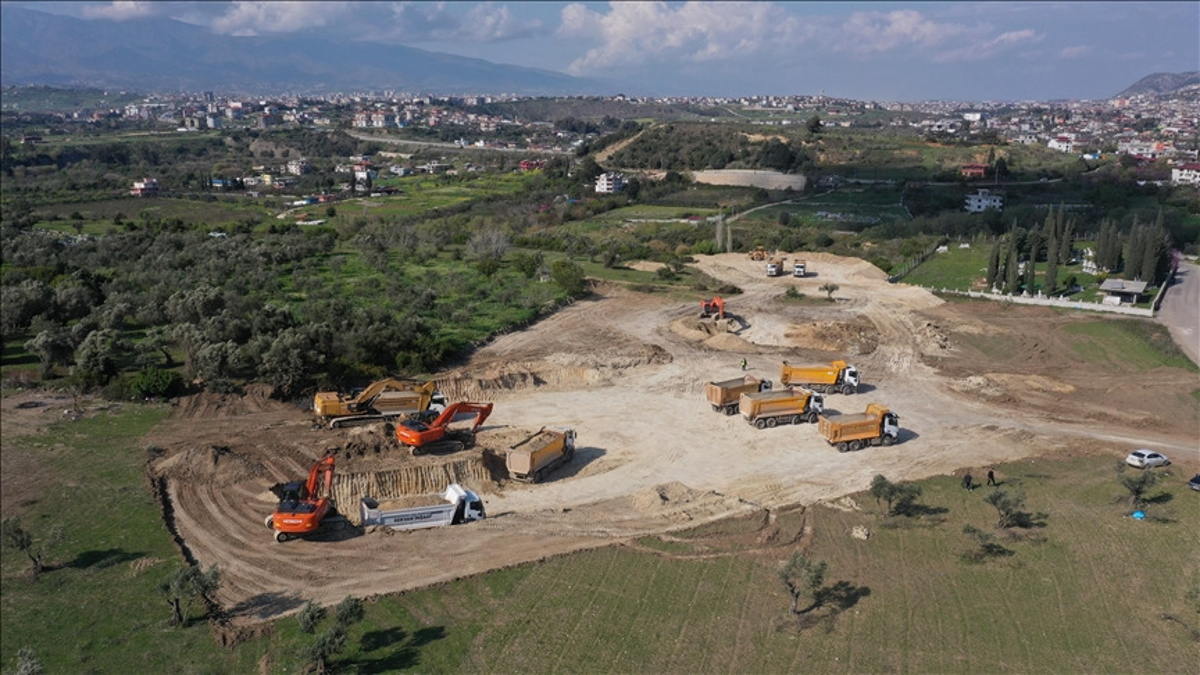 "Asrın felaketi" olarak nitelenen 6 Şubat'taki Kahramanmaraş merkezli depremlerde büyük hasar gören Defne ilçesi Bostancık Mahallesi'nde yapılacak hastanenin inşası için çok sayıda iş makinesi 24 saat esasına göre çalışıyor.
