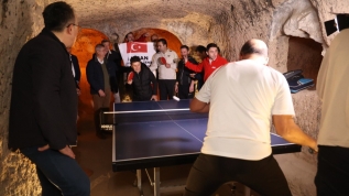 Türkiye Masa Tenisi Federasyonu tarafından Kapadokya'da düzenlenen etkinlik kapsamında, sıcak hava balonunda, tarihi Nevşehir Kalesi'nde ve Kaymaklı Yeraltı Şehri'nde masa tenisi maçı yapıldı.