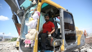 Oyuncakları iş makinesine astığı için sosyal medyadan da çok sayıda teşekkür mesajı aldığını ifade eden Hüsnüoğlu, zorlandığını ancak azimle işini yaptığını anlattı.
