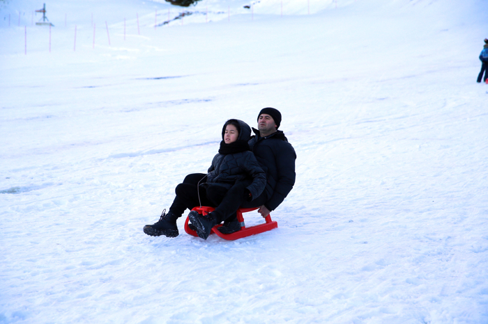 Kayak merkezinde kızak pisti ile acemi pisti, ziyaretçilere hizmet vermeye başladı.